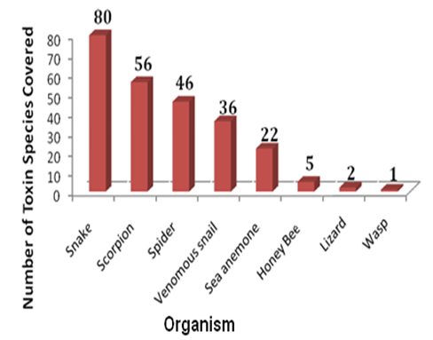 Fig. 2: Distribution of toxins and their source organisms curated in NEUROTOX database
