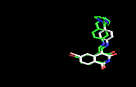 Fig. 3: Overlay of docked and crystallized bioactive conformation of bound ligand