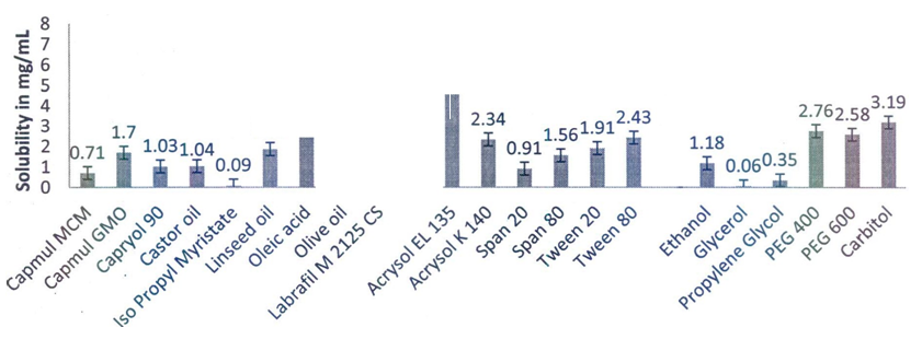Fig. 1: Solubility study of Telmisartan in various excipients
