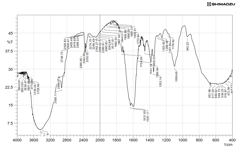 Fourier transform infrared analysis (SHIMADZU) was conducted to study the drug excipient interactions. Samples were scanned in the range from 400-4000 cm-1 Thedrug excipients compatibility study was determined using Potassium bromide (KBr) pellet method and scanned in the range of 4000 cm-1 to 400 cm-1The IR spectrum of the pure drug was compared to IR spectrum of optimized formulation to check for interaction.