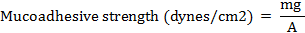 Where, m = weight required for detachment in grams, g = Acceleration due to gravity (980 cm/s2). A = Area of mucosa exposed.
