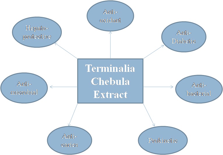 The extract of Terminalia chebula have been widely investigated for its various pharmacological effects. The plant has been known to possess multiple pharmacological effects due to which a number of therapeutic uses have been associated with the plant. Terminalia chebula has been noted to possess potent antioxidant properties due to the presence of the phenolic compounds present in its extract [20-21].