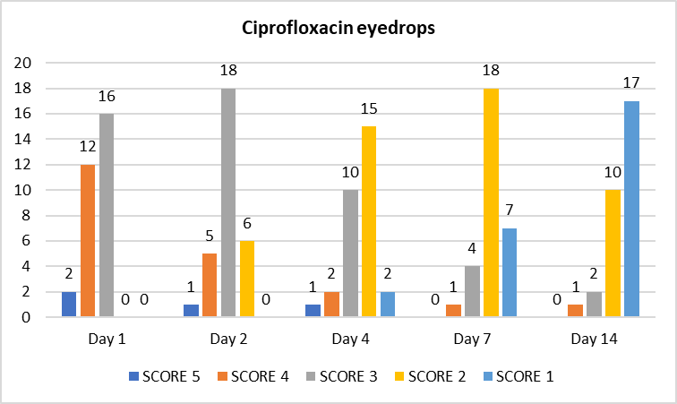 Fig. 3: Scoring of signs and symptoms with ciprofloxacin eye drops