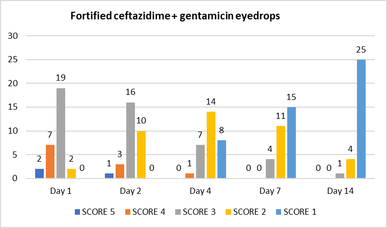 Fig. 4: Scoring of signs and symptoms with fortified ceftazidime and gentamicin eye drops