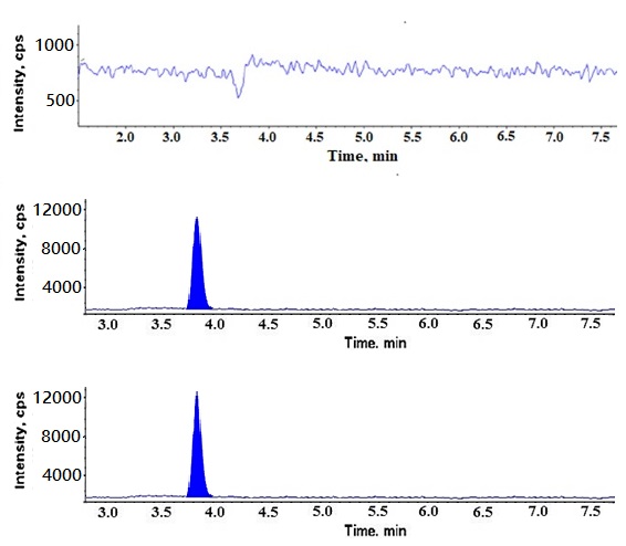 The newly developed LC-MS/MS method’s validation was performed according to the ICH guidelines in relation to the analytical parameters such as [14] specificity, accuracy, linearity, limit of detection (LOD), limit of quantitation (LOQ), precision, and robustness in order to demonstrate the feasibility of the method.