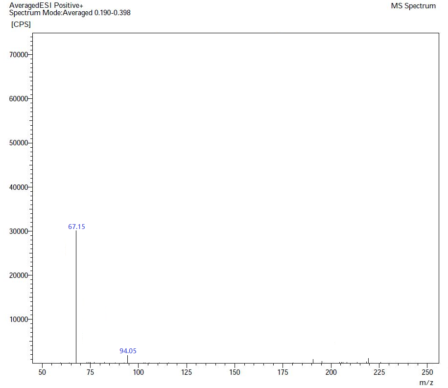 Specificity of the developed LC-MS/MS method for the analyte response at specification level was indicated by the retention of the 2-aminopyridine at the time around 3.8 and the analyte response for 2-aminopyridine in MRM is about 67.15 on mass spectrum. The specificity of the developed LC-MS/MS methods was indicated by showing the m/z peak in peak as 67.15 for 2-aminopyridine.