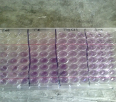 Method of Gyamfi [18] was used with a slight modification to assay the radical scavenging capacity of the extracts. In a 96 well plate, 0.02 ml of the sample was taken from the stock and added to a total volume of 0.22 ml to achieve the required concentration (90µg/ml) and the remaining concentrations were obtained by serial dilution. 0.2 ml of DPPH dissolved in methanol was added and incubated for 30 min. The absorbance was measured at 517 nm and the ability of the sample to scavenge the radical was calculated relative to the control using the formula [19]. All measurements were performed in triplicate.