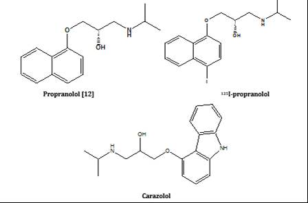 Fig. 1: Chemical structures of propranolol, 125I-propranolol and carazolol