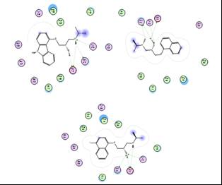 Fig. 10: Docking of carazolol, propranolol and 125I-propranolol in the binding pocket of β2-adrenergic receptor (PDB 2RH1)