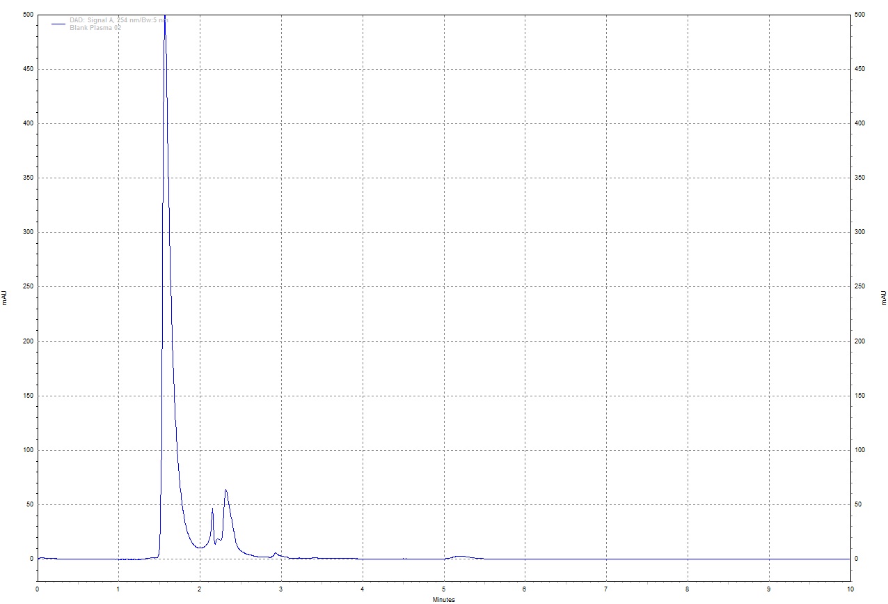 A number of HPLC analytical methods have been developed for the determination of CTX in biological samples [2-9]. They generally were used a reversed-phase systems with UV detection but a HPLC run time for drug analysis was 20-40 minutes [2-7]. Moreover, the sensitivity of most reported methods is rather poor [3, 6-8, 10-14], using peak height quantification rather than peak area and various organic solvents or strong acid were used, such as 70% perchloric acid for deproteinizing the CTX in plasma samples. However, no information regarding long term stability is available in many studies. Most of the reported methods though were not sufficiently validated. Thus, in this paper a sensitive, selective, reproducible and stability indicating HPLC-UV assay of NaCTX concentration in rat plasma was developed and validated for accuracy, precision, recovery, linearity and long-term stability. This developed method was verified by analyzing plasma samples from rats after an oral administration of NaCTX solution.