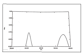 A drug solution of 10 μg/ml in distilled water and phosphate buffer (pH 7.4) was prepared and scanned by taking the appropriate solvent as blank and the UV spectrum was recorded in the range of 200-400 nm by using double beam UV/Visible spectrophotometer (Shimadzu 1800. Japan).