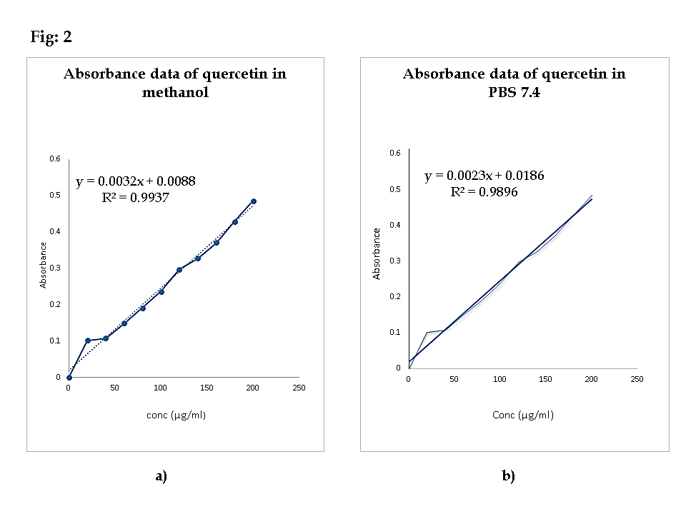 Standard curve of quercetin in phosphate buffer (pH 7.4)