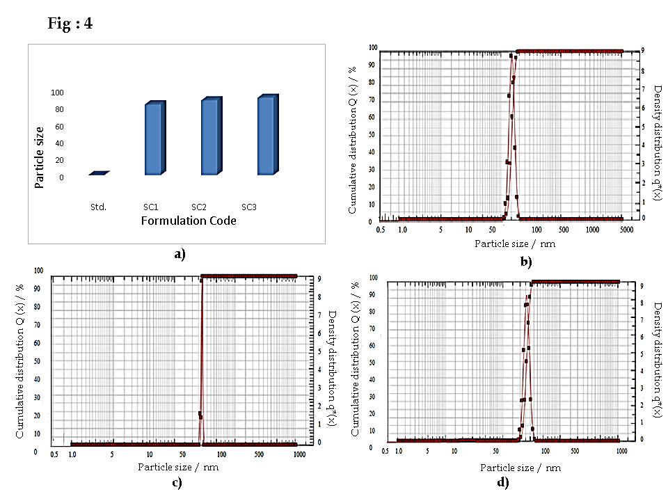 The optimized batch SC 1 was assessed for its stability for 3 mo, as per ICH guidelines. The Formulation was evaluated for its particle size and zeta potential at intervals of 0 d, 30 d, 60 d, and 90 d.