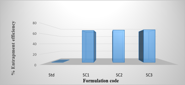 Fig. 10: Graphical representation of entrapment efficiency (%) of final batches of SC. The data represented as mean (n=3)