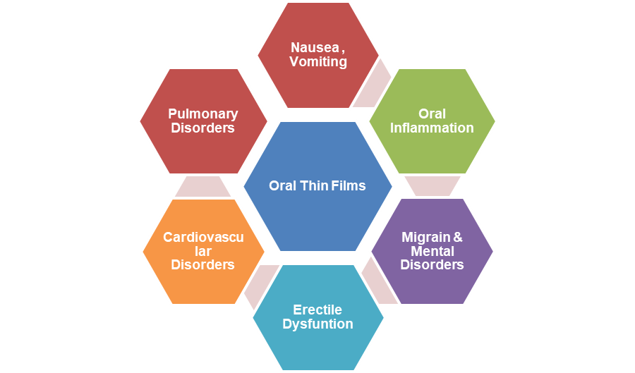 Fig. 4: Therapeutic applications of oral thin films [1-10, 30]