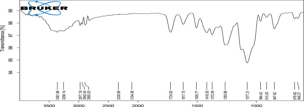 FTIR study was performed to override the possibility of interaction between drug and polymer. FTIR studies were performed on pure drug fluconazole, nanosponge formulation F4 (HPMC), F8 (EC) and F12 (ERS100). The nanosponges were mixed with potassium bromide (KBr) in 1:90 ratios and compressed in the form of a pellet by 15 tones pressure. The FTIR spectrum was recorded in the wavelength range of 4000 to 400 cm-1 [19].