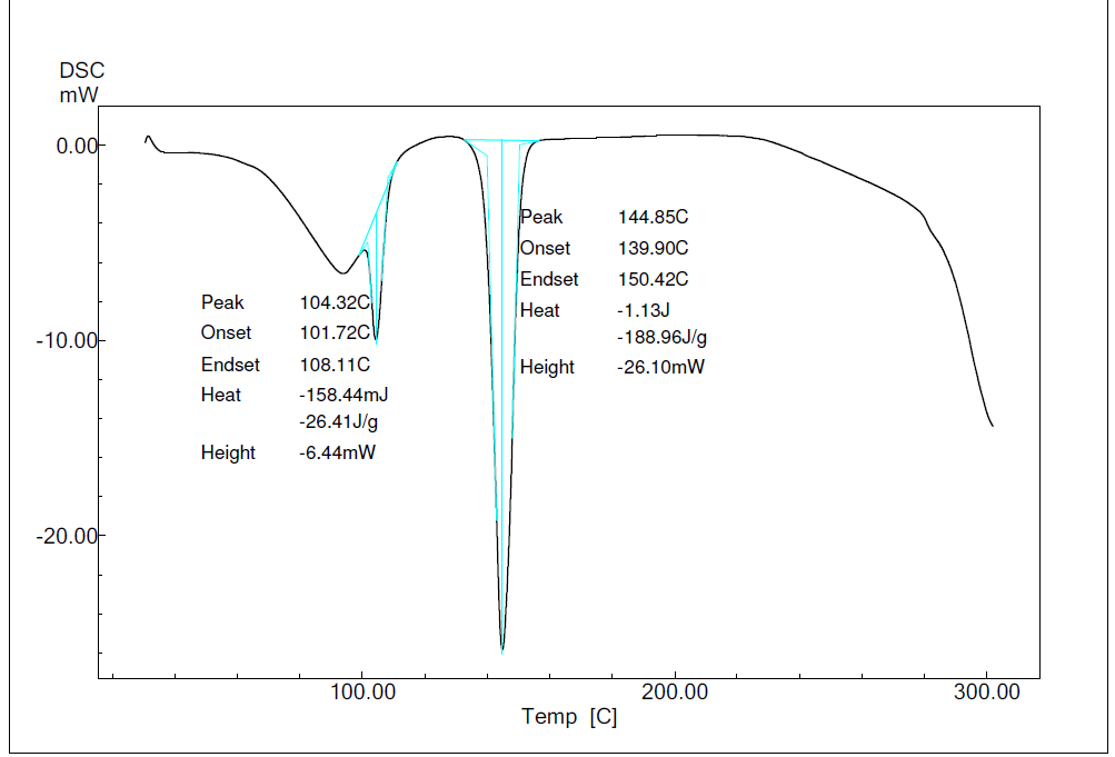 A differential scanning calorimeter was used to obtain DSC peaks of pure drug and the prepared nanosponge F5 (EC). The DSC thermogram was obtained by sealing the drug or formulation in hermetically in an aluminium pan and kept under nitrogen purging (atmosphere). The samples were scanned from room temperature to 300 °C and with 10 °C rise/min [20].