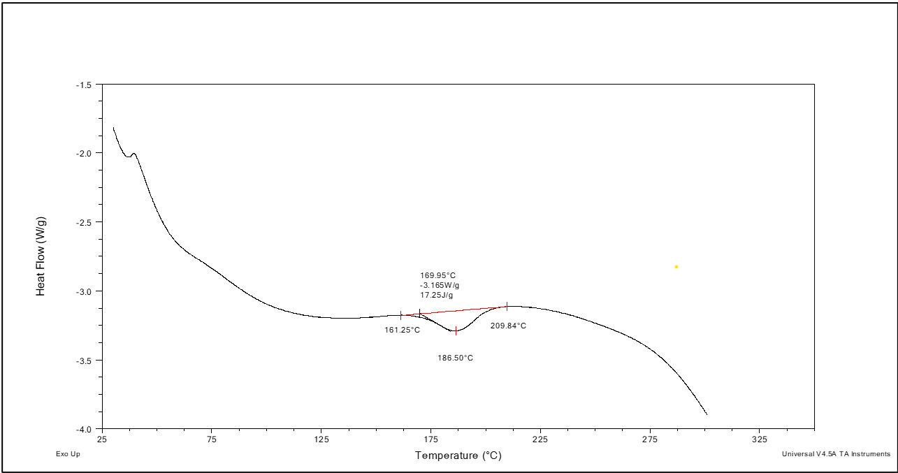 Fig. 10: DSC thermogram of optimized fluconazole nanosponge F5 (Ethyl cellulose)