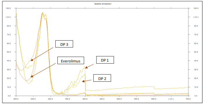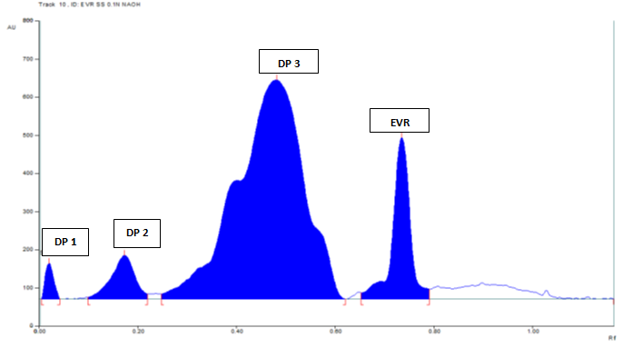 HPTLC (High-Performance Thin Layer Chromatography), TLC (Thin Layer Chromatography), UV (Ultraviolet), LC-MS (Liquid Chromatography – Mass Spectrometry), EVR (Everolimus), DP (Degradation Product), ICH (International Council for Harmonisation of Technical Requirements of Pharmaceuticals for Human Use)