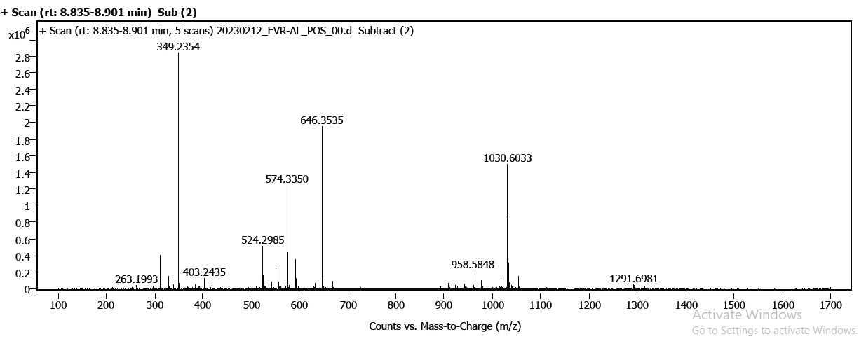 Fig. 6a: LC-MS mass spectrum of alkali-treated EVR (RT – 8.88 min)