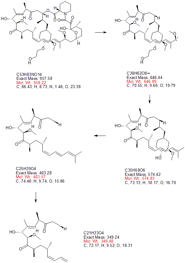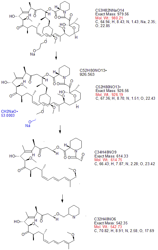 The standard everolimus and degradation samples under alkaline conditions are subjected to LC-MS analysis. From the obtained results of LC-MS analysis possible fragmentation and degradation pathways are proposed.