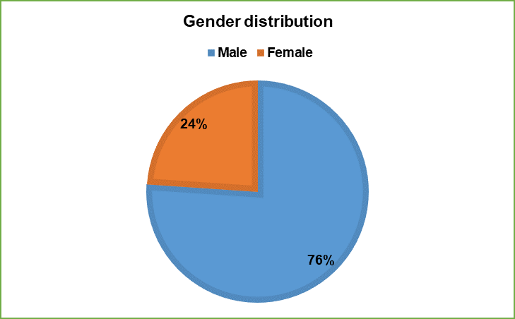Fig. 2 demonstrates a significant gender disparity among animal bite victims, with 76.07% being male and 23.93% being female.