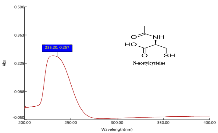 Fig. 2: N-acetylcysteine wavelength of maximum absorbance at 235 nm