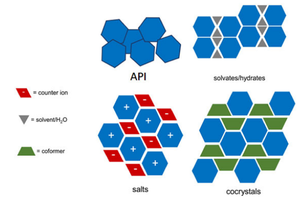 Fig. 2: Various pharmacological forms for API that are solid and multicomponent [24]