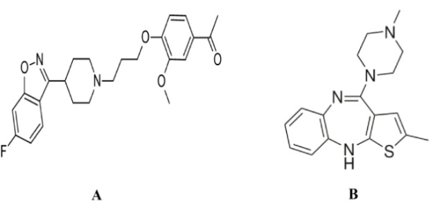 Fig. 1: Chemical structure of ILO (A) and OLA (B)