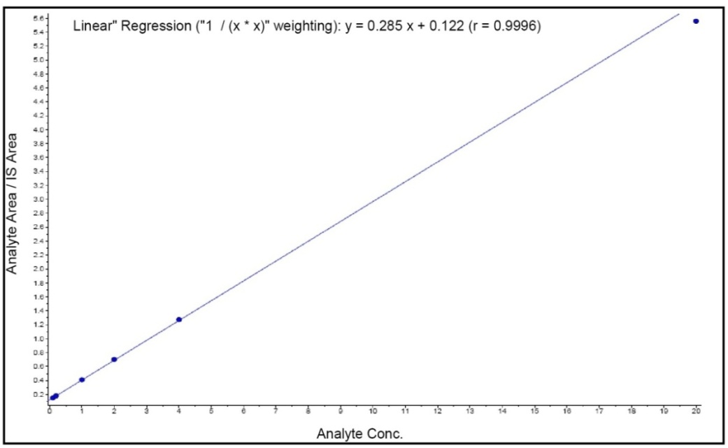Fig. 3: Linearity of standard preparation range from 0.5 to 100 ng/ml and least square regression equation
