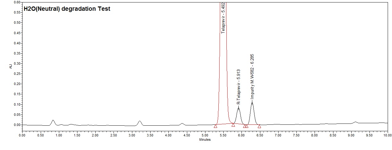 | Water hydrolysis(70°C) | 60 h | 5.8 | 93.6 | 99.4 | R-Telaprevir was major degradation product. |
