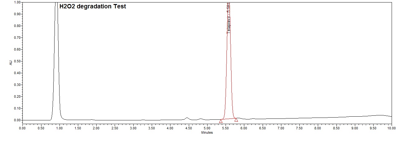 | Oxidative degradation | in 10% hydrogen peroxide solution and the solution was left in dark under stirring for 18hat RT. |