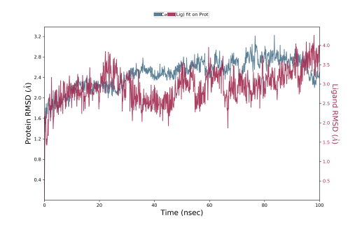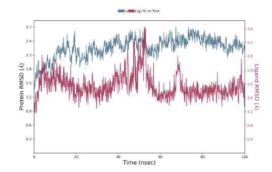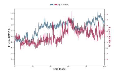 Molecular dynamics simulation studies of the ligand-receptor complex was identified to confirm the mode of action of proposed 1,3,4 thiadiazoles. The Desmond dynamic package in Academic version of Schrodinger software was used to identify the binding affinity of ligand-receptor complexes [20]. The simulation studies were performed in linux atmosphere and the time-related changes of the complexes were calculated. A water model was established using SPC water model. The electric charges were maintained with the addition of counter ions. The energy of the system was decreased prior to the commencement of simulation procedure. The entire simulation process was performed at temperature of 300 K and one atmospheric pressure by employing Nose Hoover method [21-24]. The most stable confirmations were identified.