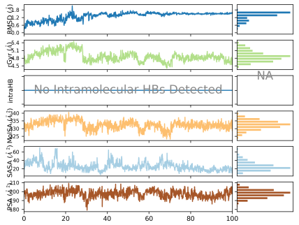 The molecular dynamic simulation studies were performed for five 1,3,4 thiadiazoles with most significant docking score. To identify the molecular interactions of selected ligands with InhA protein a 100 ns molecular dynamic simulation was performed. The MD simulation trajectory events of InhA-TDZ 10 exhibited minimum fluctuations at the beginning and was stabilized at 2.8A°, having an average RMSD of 2.2 A° depicted in fig. 1 a. Fig. 1b showed hydrophobic interactions, ionic bonds, absence of hydrogen bonds. The RMSD of TDZ 9 and TDZ 8 showed fluctuations which were stabilized at 3.0 A° and 2.8 A° respectively (fig. 2a,3a). TDZ4 and TDZ 3 trajectory showed highest stability throughout the entire simulation process with average RMSD of 3 A° and 2.8 A° (fig. 4a,5a). The RMSF of all the ligands and proteins showed no fluctuations indicating the binding of corresponding amino acids with the suitable functional groups of ligands. The histogram and timeline representation of all protein–ligand complex were depicted. The 2D fitting pose interactions of all the five ligands with InhA protein complex exhibited valuable information regarding the intermolecular interactions and development of new antimycobacterial agents.