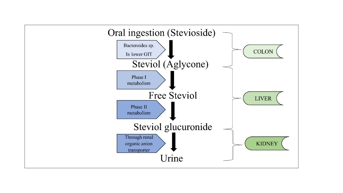 Koyama E, Kitazawa K, Ohori Y, Izawa O, Kakegawa K, Fujino A. In vitro metabolism of the glycosidic sweeteners stevia mixture and enzymatically modified stevia in human intestinal microflora. Food Chem Toxicol. 2003;41(3):359-74. doi: 10.1016/s0278-6915(02)00235-1, PMID 12504168.