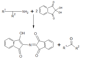 Ninhydrin(2,2-dihydroxyindane-1,3-dione), was first prepared by Riemann in an attempt to oxidize 1-hydrindone to 1,2-diketo-hydrindene with p-nitro so dimethylaniline (Ruhemann’s, 1910). Ninhydrin, a well known carbonyl reagent was applied in the pharmaceutical assay of different nitrogeneous compounds. Amino acids, amines, amides, hydrazine’s, piperazines and cyanides were all assayed using ninhydrin, as it was known to form a condensation product of a distinctive purple color that would be measured Spectro photometrically.