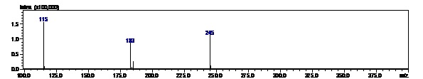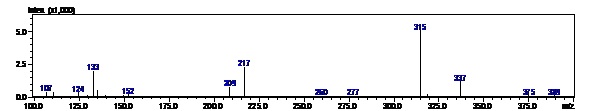 The spectra obtained, are shown in the fig. 4A, 4B and 4C. The MS conditions were first optimized for the drug and then the same conditions were tried for DP1 and DP2. A blank spectrum was taken in both positive and negative ESI modes (fig. 5 and fig. 6). The peaks which were observed in the blank spectra were not taken into consideration during interpretation of the spectra. The molecular ions m/z 219 for the drug, m/z 237 for DP1 could be observed as shown in fig. 4A and 4B respectively. However, when the same conditions were applied to DP2, no molecular ion peak was observed. Negative ionization mode was tried for DP2. A number of low intensity molecular ion peaks were observed (fig. 4C), making it very difficult to unmistakably identify the molecular ion for DP2. The drug and DP1 were observed in positive ESI mode. The high intensity peaks which were observed in both the blank as well as the sample could have led to a lower relative intensity of the molecular ion peaks of the degradation products.
