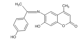 A mixture of 1.2 g of 6-nitro-4-methylumbelliferone, 1.0 g p-hydroxyacetophenone and 0.409 g of iron powder was made in a round-bottomed flask.24 ml of ethanol-water mixture (2:1 v/v) was added to this mixture.0.13 ml of conc. HCl was added, and the mixture was immediately kept for reflux at around 75 °C for about 2 h. Then, the reaction mixture was immediately filtered twice. The filtrate was fractionated twice with 20 ml of dichloromethane, after which the dichloromethane fractions were collected. The dichloromethane extract was dried using 5 g of anhydrous MgSO4, after which the extract was filtered and dried until a solid residue was formed. This residue was purified by a sufficient quantity of dichloromethane. Physical data: Crystalline, yellowish brown, yields 64.88%, MP 158.65 °C, TLC Rf0.56 (ethyl acetate: n-hexane, 6:4) [8].