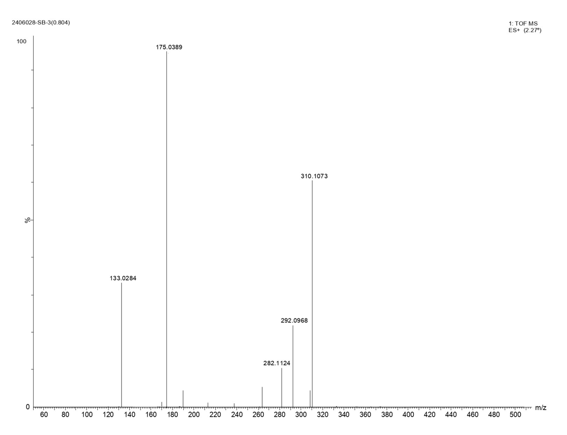 ATR-IR (Bruker Alpha II ECO-ATR), NMR (Agilent 400MHz NMR, solvent DMSO) MS (Waters Xevo G2-Xs QTof with electrospray ionization as the ionization technique, TOF as the mass analyzer and calibration set to M+1).