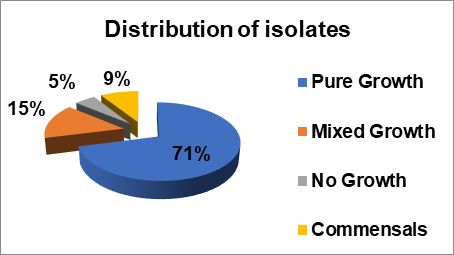 The data was analyzed by using Statistical Package for Social Sciences (SPSS) version 21.0 and the prevalence of organisms was determined and expressed in percentage.