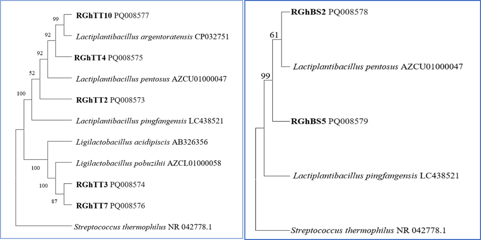 | 5 | RGhTT10 | Lactiplantibacillus argentoratensis | PQ008577 | 1345 | 99.93 |