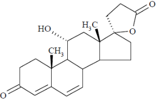 Eplerenone (fig. 1) is pregen-4-ene-7, 21-dicarboxylic acid, 9, 11-epoxy-17-hydroxy-3-oxo, γ-lactone, methyl ester (7α, 11α, 17α) [1, 3]. It has a molecular formula of C24H30O6 and a molecular mass of 414.49. Eplerenone is the first highly selective aldosterone receptor antagonist (SARA) to effectively block aldosterone at receptor sites in body tissues, aldosterone being a component of rennin-angiotensin-aldosterone system [1-6]. Eplerenone is used for treatment of hypertension and heart failure [1-6]. Eplerenone is specifically indicated for the reduction of risk of cardiovascular death in people with heart failure and left ventricular dysfunction within 3–14 d of an acute myocardial infarction, in combination with standard therapies and as treatment against hypertension. It appears equivalent to spironolactone but is much more expensive [7]. It is marketed by Pfizer under the trade name Inspra.