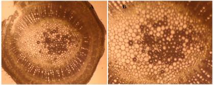 Fresh flowers of both plants were sliced into thin sections and treated with 10%, 20%, 30%, 40%, 50% alcohol for 2 min each, then add 2drops of saffaranine keep it for 5 min then treat it with 60%, 70% and 80% alcohol followed by the addition of 2drops of malachite green for 5 min respectively. After treating it with 90% and 100% alcohol pour 1drop of oil on slide and observe the sections under microscope [21].