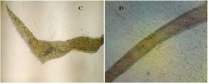 Fig. 1: Histological examination of M. oleifera and J. sambac flower. A: T. S of pedicle of M. oleifera; B: T. S of center part of pedicel of M. oleifera; C: T. S of petal of M. oleifera;D: T. S of petal J. sambac