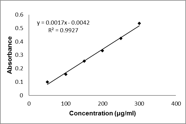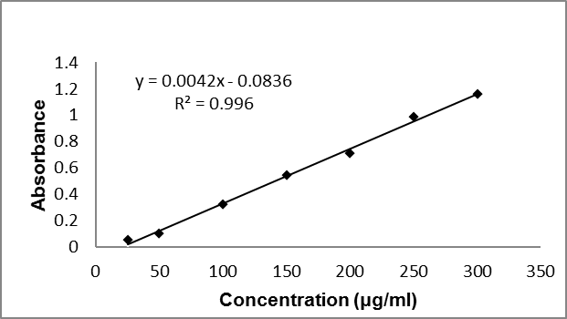 One g of air-dried powder of roots and stems of G. arborea was extracted with 100 ml methanol, water and ethyl acetate by maceration for 24 h and filtered. The final volume of each filtrate was adjusted to 100 ml. One ml of these extracts was diluted up to 10 ml with methanol and was used for the estimation of flavonoids. To 3 ml of the each extract, 3 ml of methanolic AlCl3 was added. After 10 min, the absorbance was read at 430 nm and distilled water was used as a blank. The data was compared with similarly prepared set of standard substance quercetin in concentration range of 25 µg to 300 µg per 25 ml. Total flavonoid content was calculated by the method described [42].