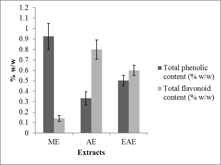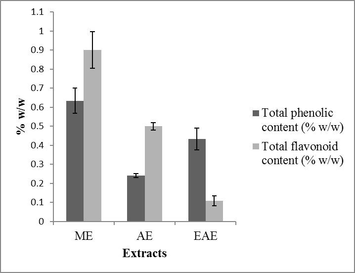 Fig. 4: It shows total flavonoid and phenolic content of stems of G. arborea (n=3)