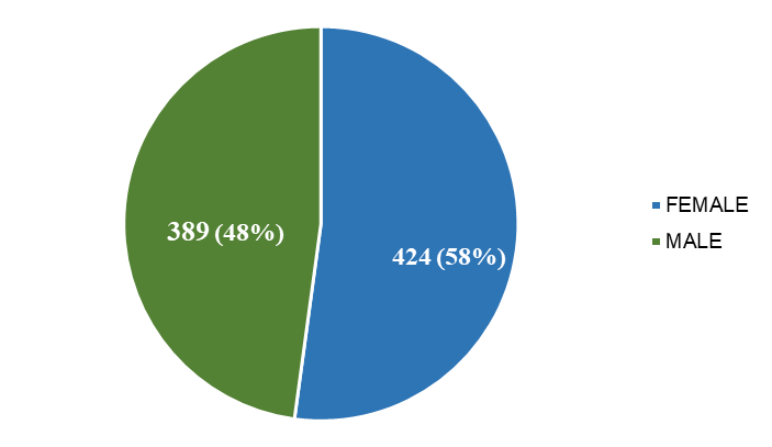 Fig. 1: Graphical representation on gender distribution of the study subjects