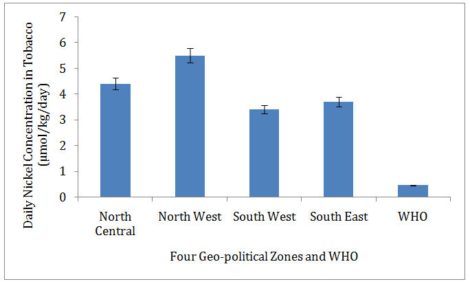 Conclusion: Tobacco snuff samples sourced from various geopolitical zones of Nigeria are highly contaminated with the heavy metal Nickel.