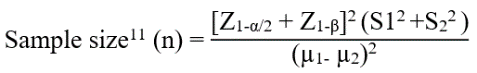 Where, Z1-α/2 = 1.96 at 5% level of significance