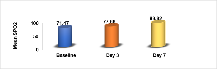 Graph 3: Comparison of baseline and day 3 and day 7 SPO2